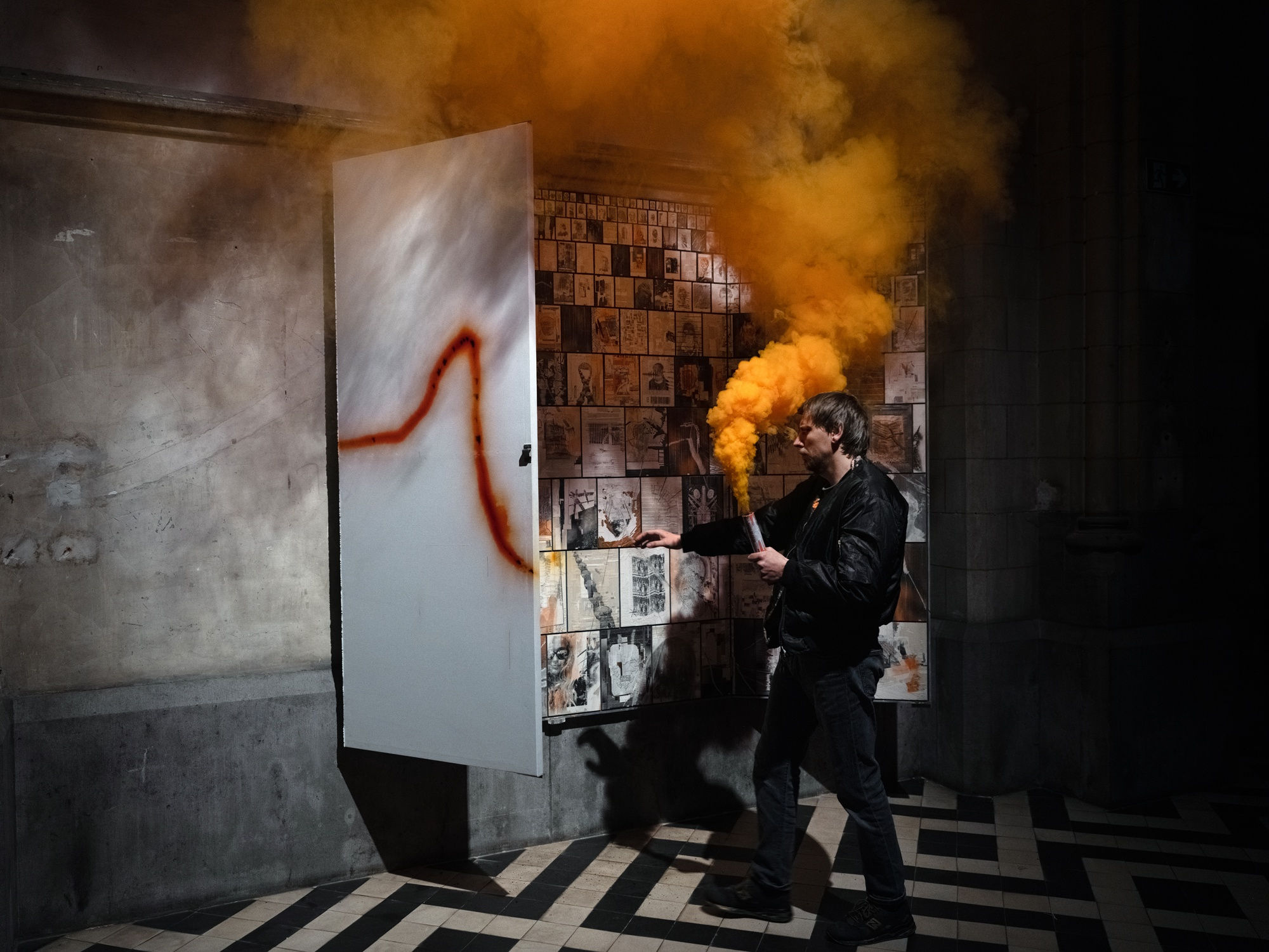 Kunsthal Extra City is proud to present the first institutional solo exhibition in the Benelux by Marcin Dudek (PL, 1979). The Group brings together visual works and installations around the central themes of crowd psychology and the spectacle. Informed by his violent youth, spent among the hooligans at the hard core of football club KS Cracovia, Dudek’s work has been imbued with questions about safety and violence, group dynamics, family, but above all about our urge to belong.