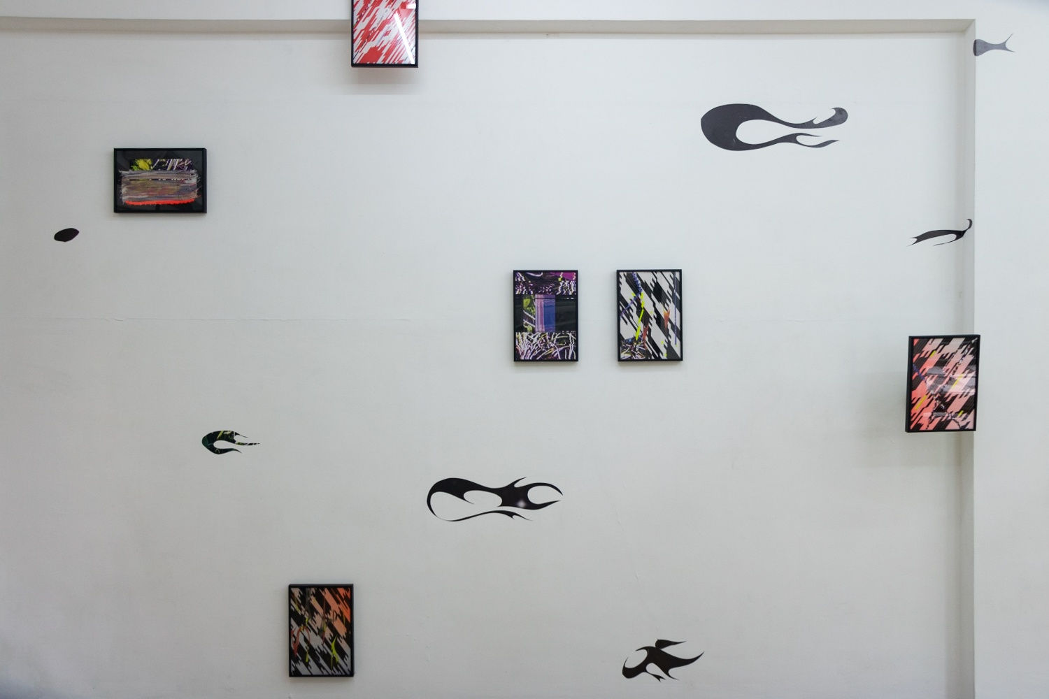 [Set of wall installation of 6 polymeric paintings with hand cut vinyl) featuring rawanXberdenyut, LKS and Lé Luhur Polymethyl methacrylate (Acrylic Tiger), epoxy resin (Samurai 2K), offcut chameleon carbon fibre polyvinyl chloride and polyacrylate adhesive (Vvivid XPO) on anodized aluminium alloy, polyurethane varnish on digital print on polyethylene vinyl (Oracle), honeycomb retroreflective tape (Grip-On), non metalized reflective tape (Steve & Leif) on polymethyl methacrylate (Acrylic Tiger)